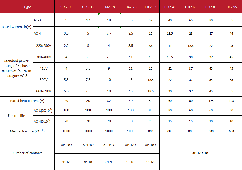 The CJX2 AC contactor has small size and simple appearance. It is suitable for AC 50 or 60Hz,rated voltage 660V, and maximum current not exceed 95A. It for making & breaking circuits, frequent start-up and control of AC contactor. The product can protect circuit from over-load when assembling with thermal over-load relay. With the thermal relay, it is combined into the electromagnetic starter.